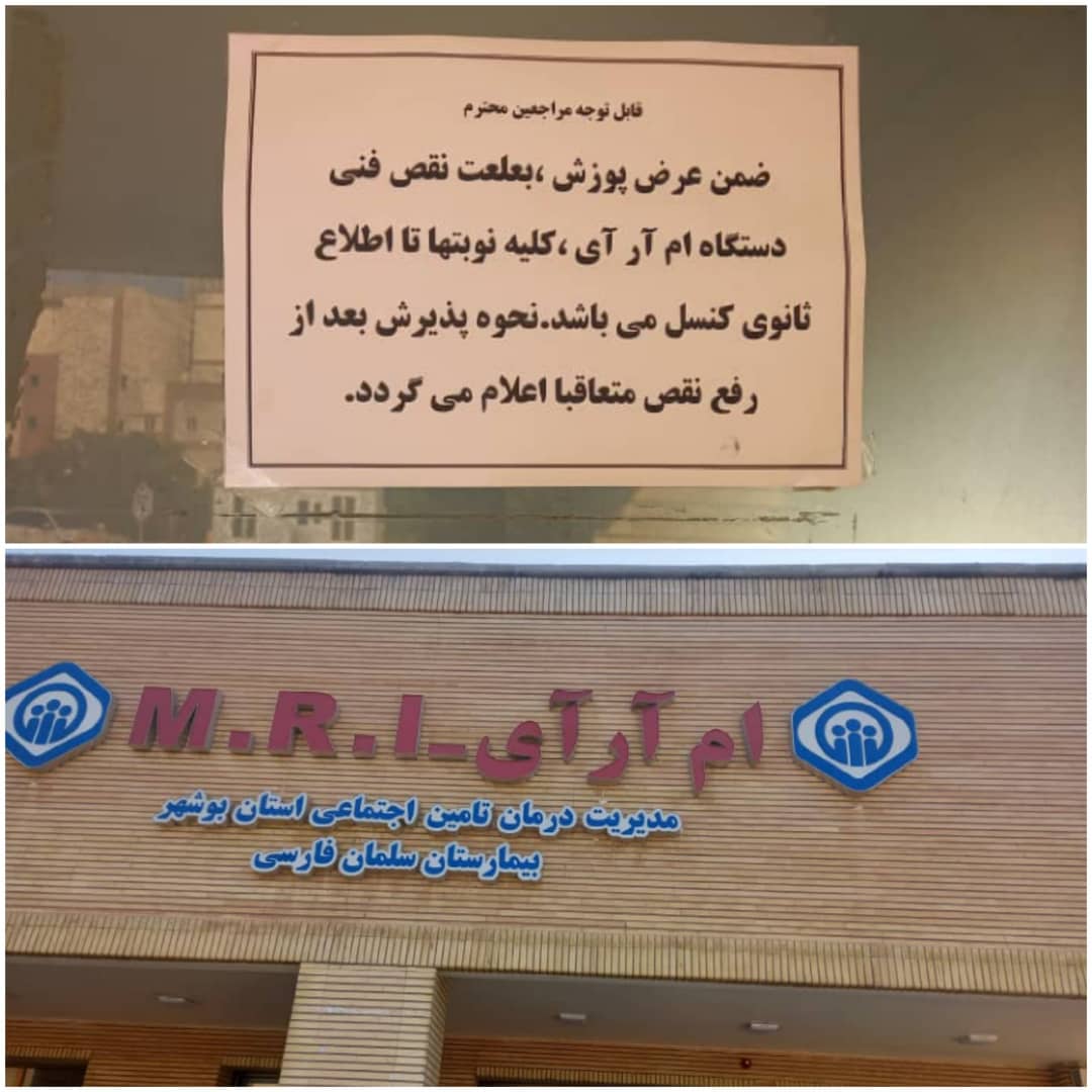 بر اساس شنیده‌ها، بیش از یک ماه است که دستگاه MRI بیمارستان تأمین اجتماعی بوشهر از کار افتاده و از...